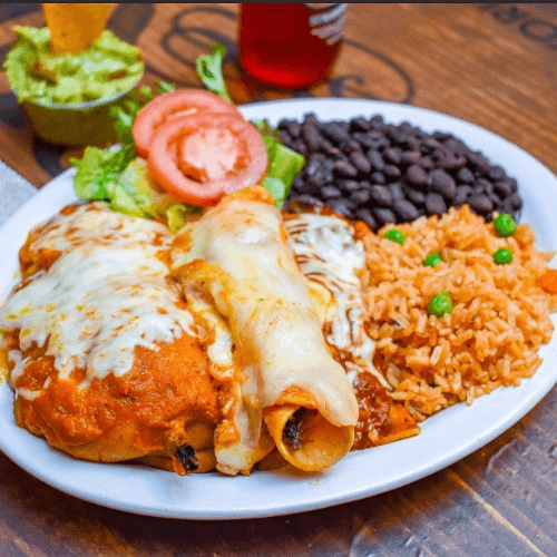 Flour tortilla filled with your choice of meat, prawns, beans, rice, guacamole, sour cream, lettuce, cheese and salsa